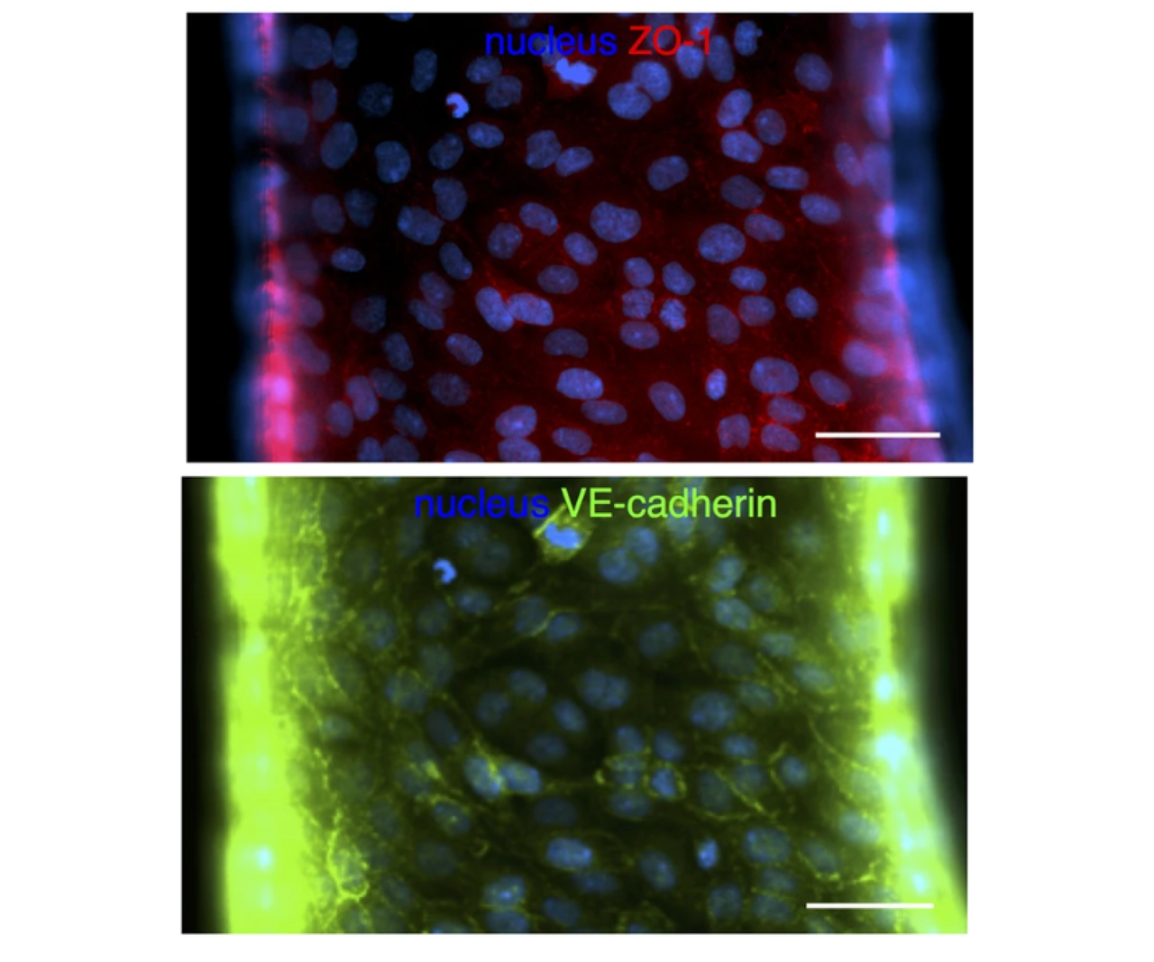 Barrier function and vascular responses can be visualized by labeling specific molecular markers.